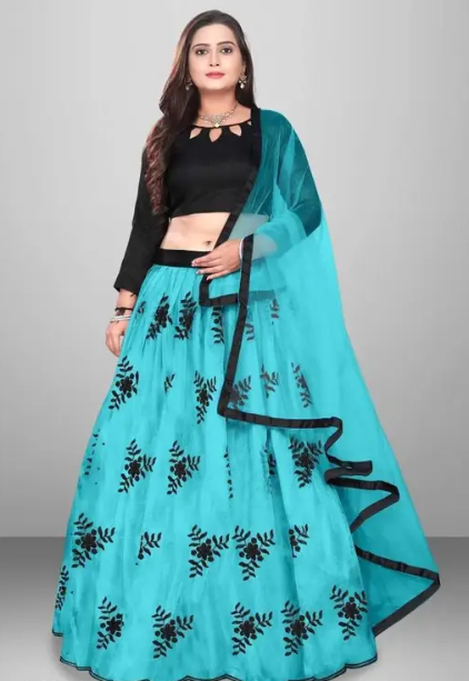 Original price was: ₹999.00.₹207.00Current price is: ₹207.00.Embellished Semi Stitched Lehenga Choli (Light Blue)
