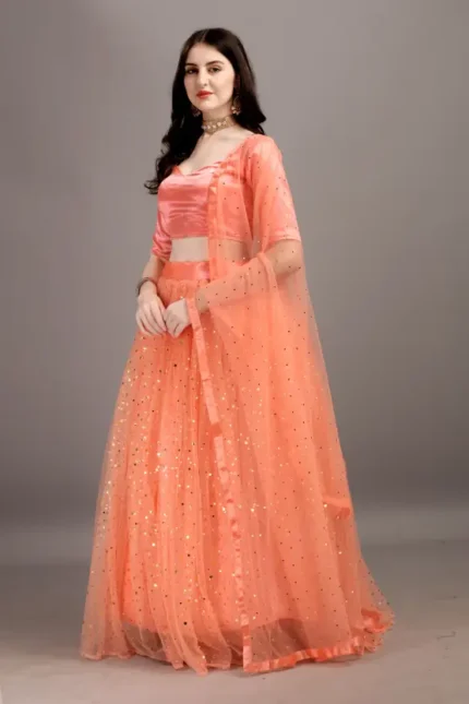 Original price was: ₹999.00.₹207.00Current price is: ₹207.00.Semi Stitched Lehenga Choli (Orange)