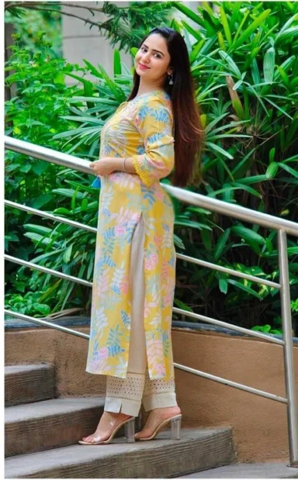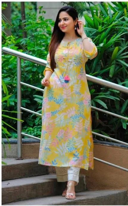 Original price was: ₹999.00.₹193.00Current price is: ₹193.00.Women Printed Kurta (Yellow)