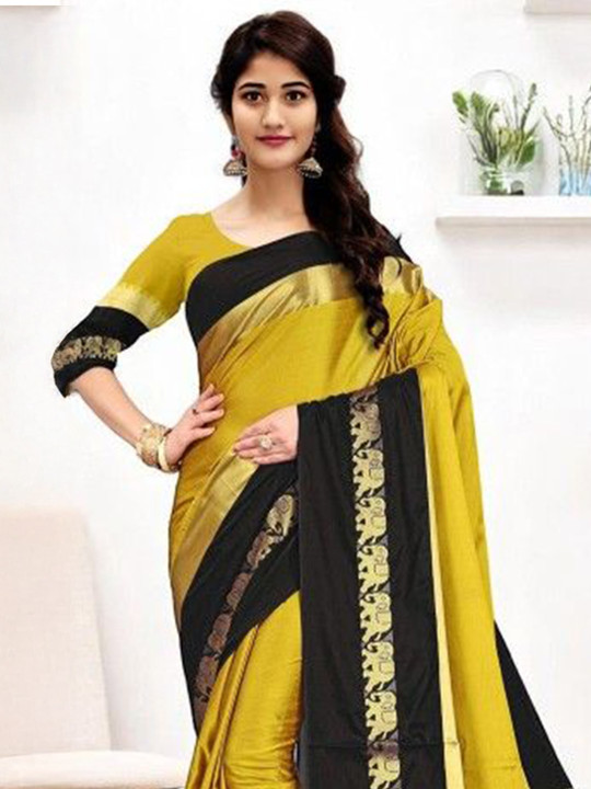 Woven Banarasi Cotton Silk Saree (Mustard)